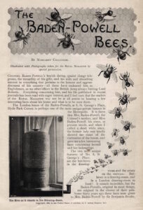 In 1900, The Royal Magazine published an article about ‘The Baden-Powell Bees’, highlighting the unusual indoor beehives with access to the outdoors via a pipe through the wall, tended