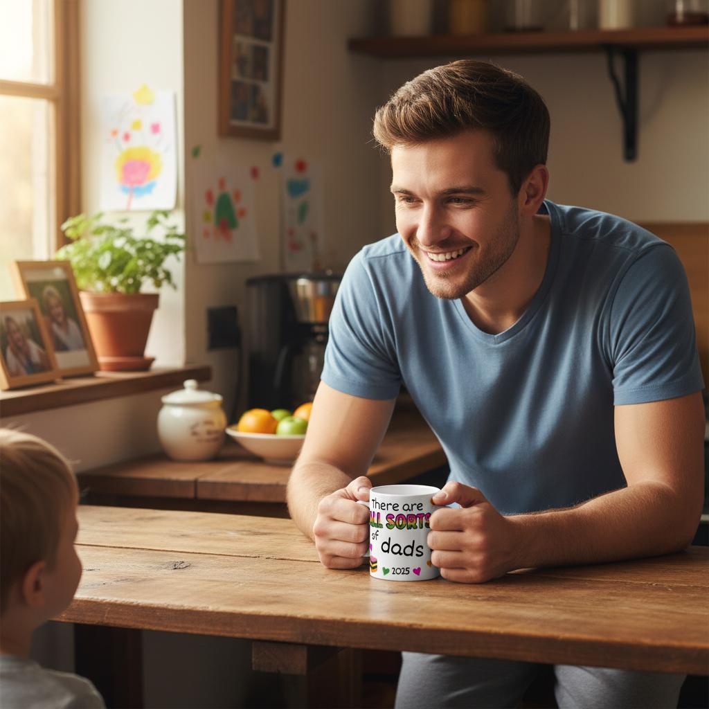 This mug design features bright, cheerful graphics and a heartfelt message. making it the perfect keepsake for dads who deserve a reminder with their morning coffee or tea.