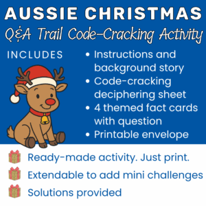 Learn about Christmas in Australia as you follow the Q&A Trail, collecting answers, decoding hidden messages, and piecing together the clues. Every correct answer brings you closer to discovering the mystery word — and ultimately cracking the four-digit code!