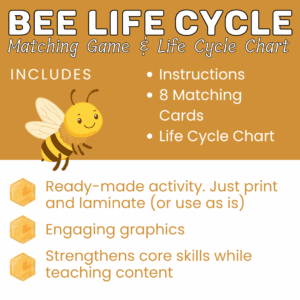 This hands-on activity pack makes it easy for kids to learn about the interesting life cycle of bees in a hands-on way. Perfect for youth groups, clubs, homeschool activities, or during a nature-themed activity as the pack combines creativity with learning.