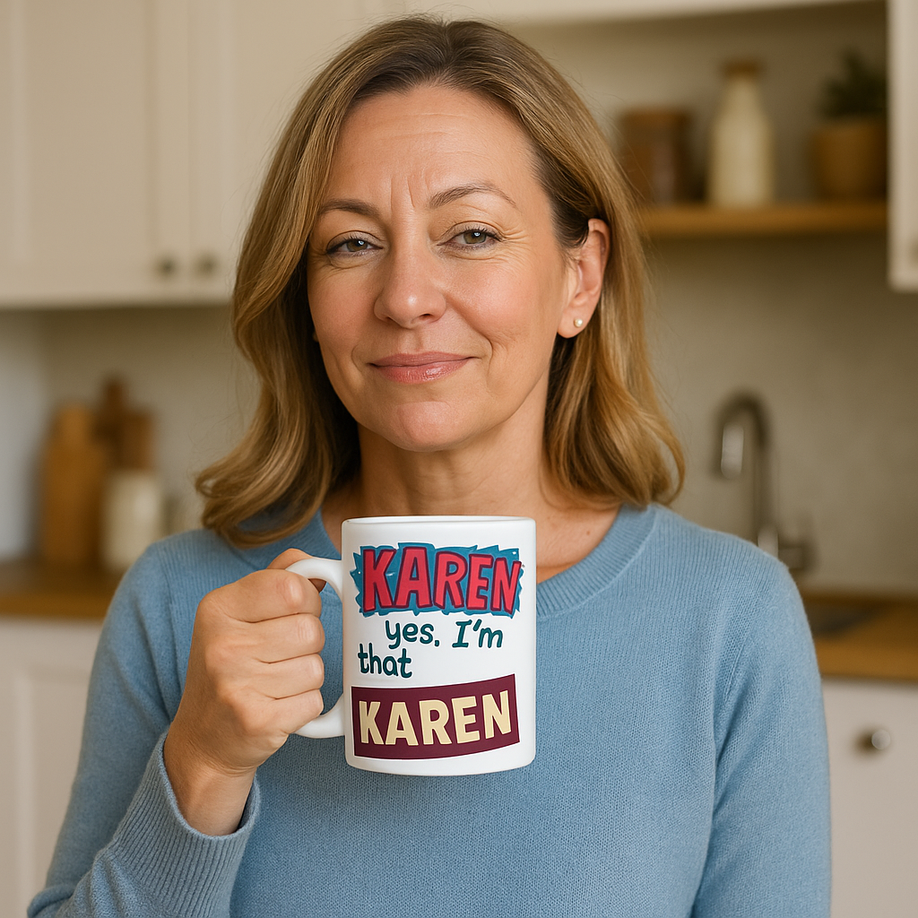 Perfect for those ready to sip their  beverage while owning their name and their attitude — or for anyone looking to give a fun, sarcastic gift to a Karen friend.