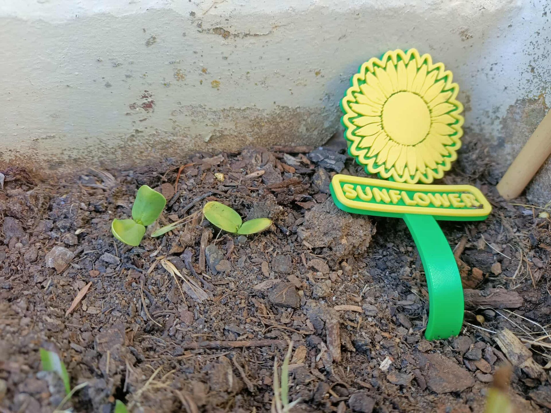 Nothing has appeared yet in any of the other spots where I planted the seeds. That said, lack of sun definitely isn’t the issue — most of the special plant labels I made from PLA plastic have warped in the heat.